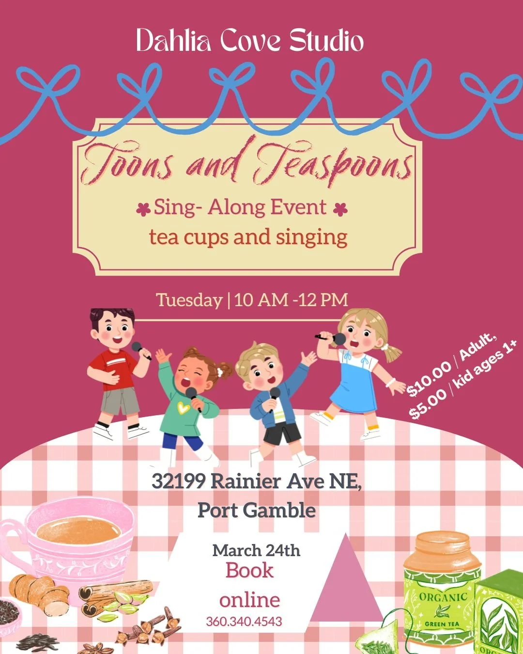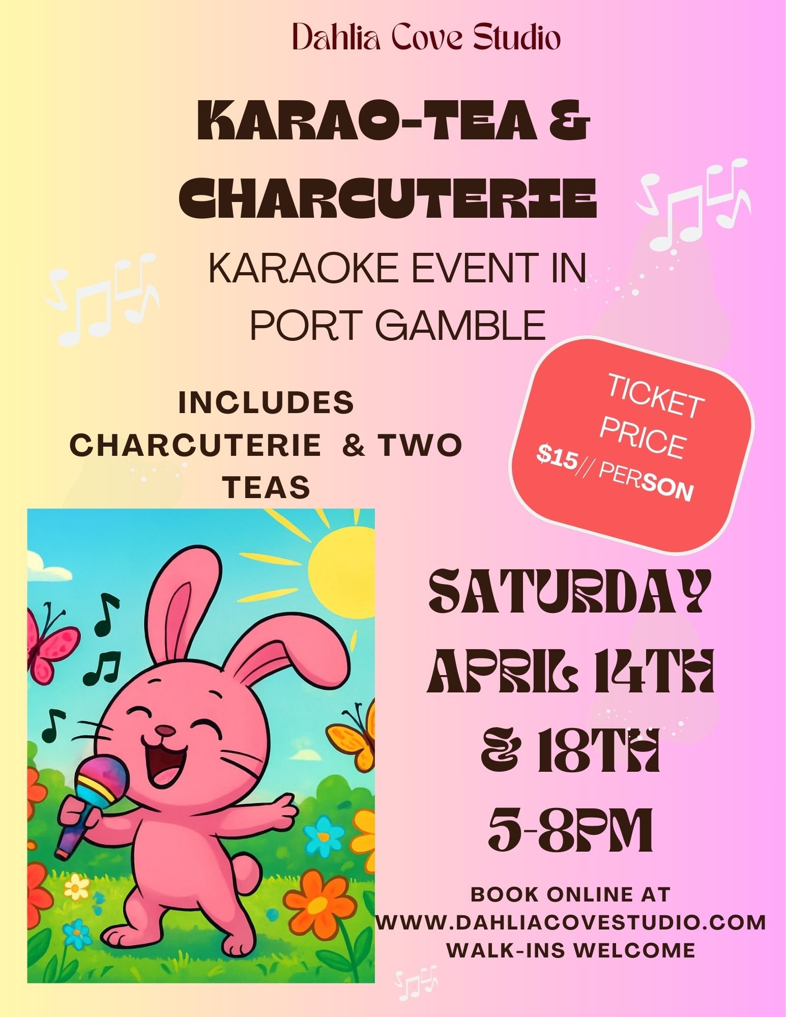 Hop in for a fun filled evening of Karaoke and Tea. $15 Per Person- Includes Charcuterie Cup & Two Teas